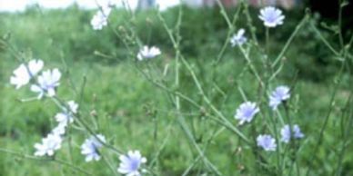 Chicory – is a summer perennial that develops from a basal rosette. chicory looks similar to dandelion in the rosette form, but the lobes of the leaves are not opposite like those of dandelion. The lobes of dandelion also point toward the base. The flowers of chicory range from bright blue to purple in color. The flowers form on stems that range up to three feet in height. The flowers form from June to October. Chicory reproduces by seed.