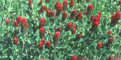 Crimsom Clover – is a cool-season annual. It grows to a height of 12 – 20 inches. The leaf of crimson clover is about the size of red clover. It is light green in color and covered with soft hair. The trifoliolate leaves are usually unmarked but can sometimes contain a few dark-red spots. The plant generally has minimal branching. The flower is a showy crimsom/burgundy flower. The flower head is approximately one inch in length and consists of 40 – 50 individual flowers. Crimsom clover spreads by seed which is produced during the spring to early summer.