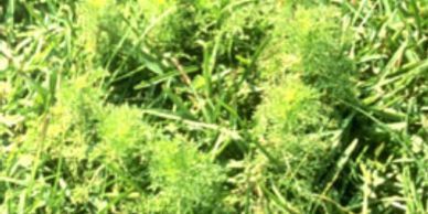 Dog Fennel – is a short-lived summer perennial. The leaves of dog fennel are divided into thread-like segments, giving a fern like appearance. The leaves will omit a foul odor. The stems of dog fennel are reddish in color, hairy and arise from a woody base. The flowers of dog fennel are small and white in color. The flowers are numerous and are borne on branched panicles. Dog fennel spreads by seed, and regrowth from the woody base.