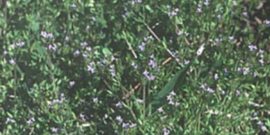 Matchweed – also called mat lippia, is a matforming perennial with opposing leaves on hairy branching stems. Leaves have small teeth at the outer tip. The purple to white flowers emerge around the tip of the seed stalk forming a match-head appearance. Matchweed spreads by both seeds and stolons along prostrate stems.