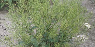 Horseweed – is an annual weed, winter or summer, depending on location. Horseweed is an upright growing plant and can reach 4 – 5 feet if not mowed. Horseweed grows in a basal rosette. The leaves which are oblanceolate in shape are 3 – 4 inches in length. The leaves alternate and have margins that are toothed. The stem of horseweed is simple and unbranched, and covered with hair. Horseweed has a taproot. The inflorescence is a panicle of heads with pink to white flowers. Horseweed spreads by seed produced in the summer.