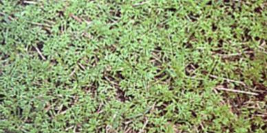 Common Chickweed – is a shallow fibrous rooted winter annual which grows in moist shaded areas. The leaves are small, smooth, pointed at the tip and elliptic in shape. They are opposite on branching creeping stems, which root at the nodes. Chickweed adapts well to different mowing heights. The flowers of common chickweed are white small star like with 5 notched petals. Common chickweed spreads by seed.