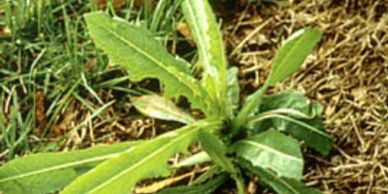 Curly Dock – is a winter perennial. It contains a deep fleshy tap root. In a turf situation the leaves appear in a rosette form. The leaves are actually alternate at the top of the tap root. The oblong leaves have a wavy appearance on their edges. The flower of curly dock is almost never found in mowed turf situations. The flower are long green spikes which turns reddish brown on maturity. The flower grows 2 – 3 feet in height and appears from April to July. Due to the lack of viable seed in turf areas, curly dock spreads by root fragments.