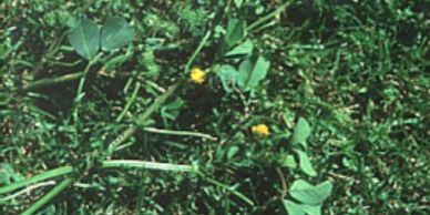 Black Medic – is normally a summer annual, but can act as a perennial in some conditions. It has a tap root, and spreads low to the ground, but it does not root from nodes on the stems. Black medic is more active on soils low in nitrogen fertility. The leaf is similar to clover and other legumes, having three leaflets. Black medic’s center leaflet is on a separate petiole. The flower of black medic is a compressed cluster of bright yellow flowers in the shape of a globular spike on short branches. The seed pod will turn black at maturity. Black medic produces viable seed under normal mowing conditions.