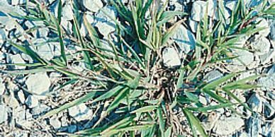 Goosegrass is a prostrate-growing summer annual. The leaves are folded in the bud. Goosegrass grows in a clump with the base of the leaves being distinctively white to silver in color. The ligule is toothed, membranous, and divided at the center. Goosegrass contains hairs only at the base of the leaf. Goosegrass seedheads contain 3 -7 spikes that form at the tip of the seed stalk. The seeds are attached in a zipper appearance on the spike. Goosegrass spreads by seeds that germinate later in the season than other annual grasses.Goosegrass seedheads contain 3 -7 spikes that form at the tip of the seed stalk. The seeds are attached in a zipper appearance on the spike. Goosegrass spreads by seeds that germinate later in the season than other annual grasses.